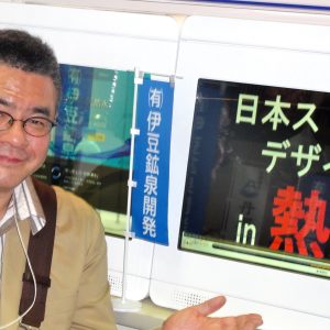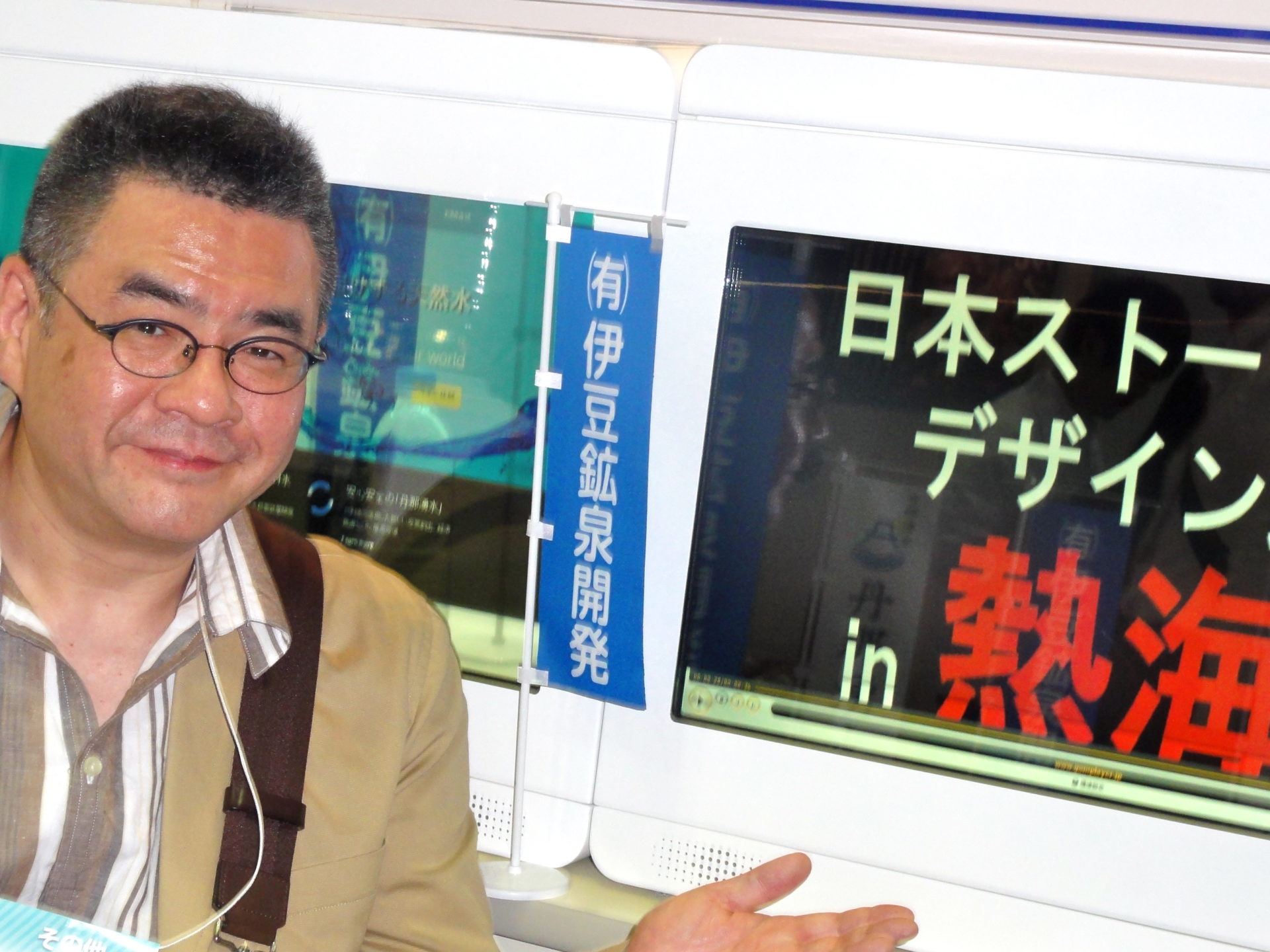 ぴこ山氏とデジタルサイネージ(ビッグサイトにて)