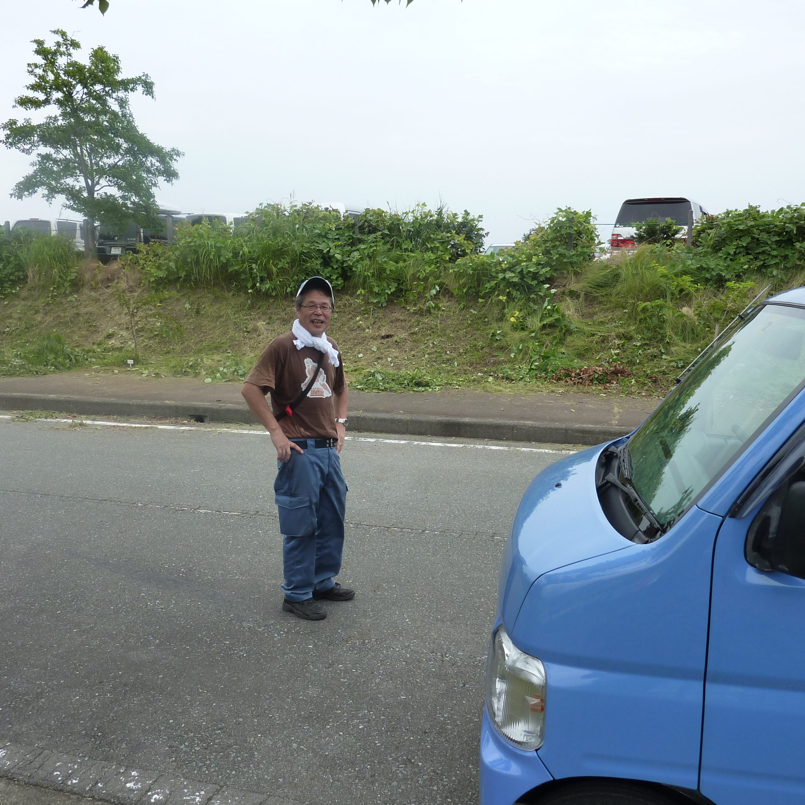 芝生広場清掃の観光施設課長