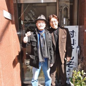 事務所前で
