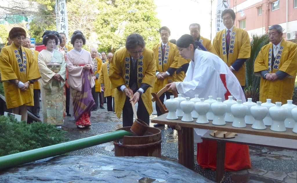 湯前神社元湯間欠泉にて