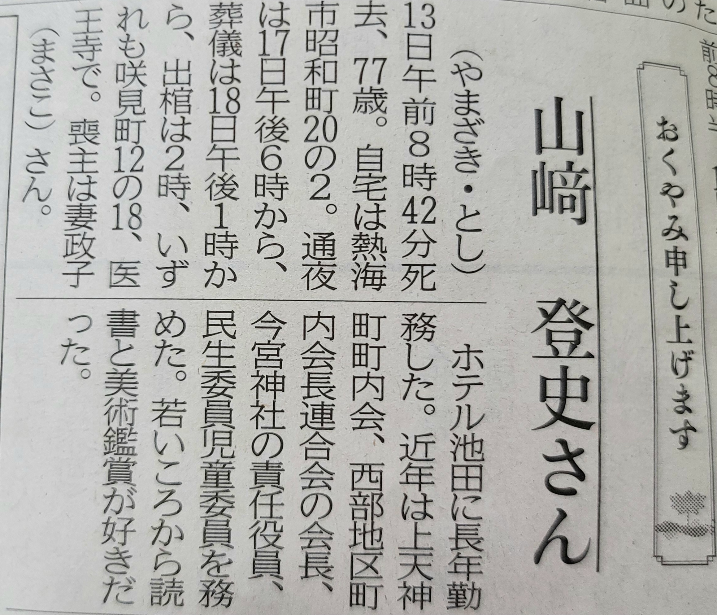 山崎訃報